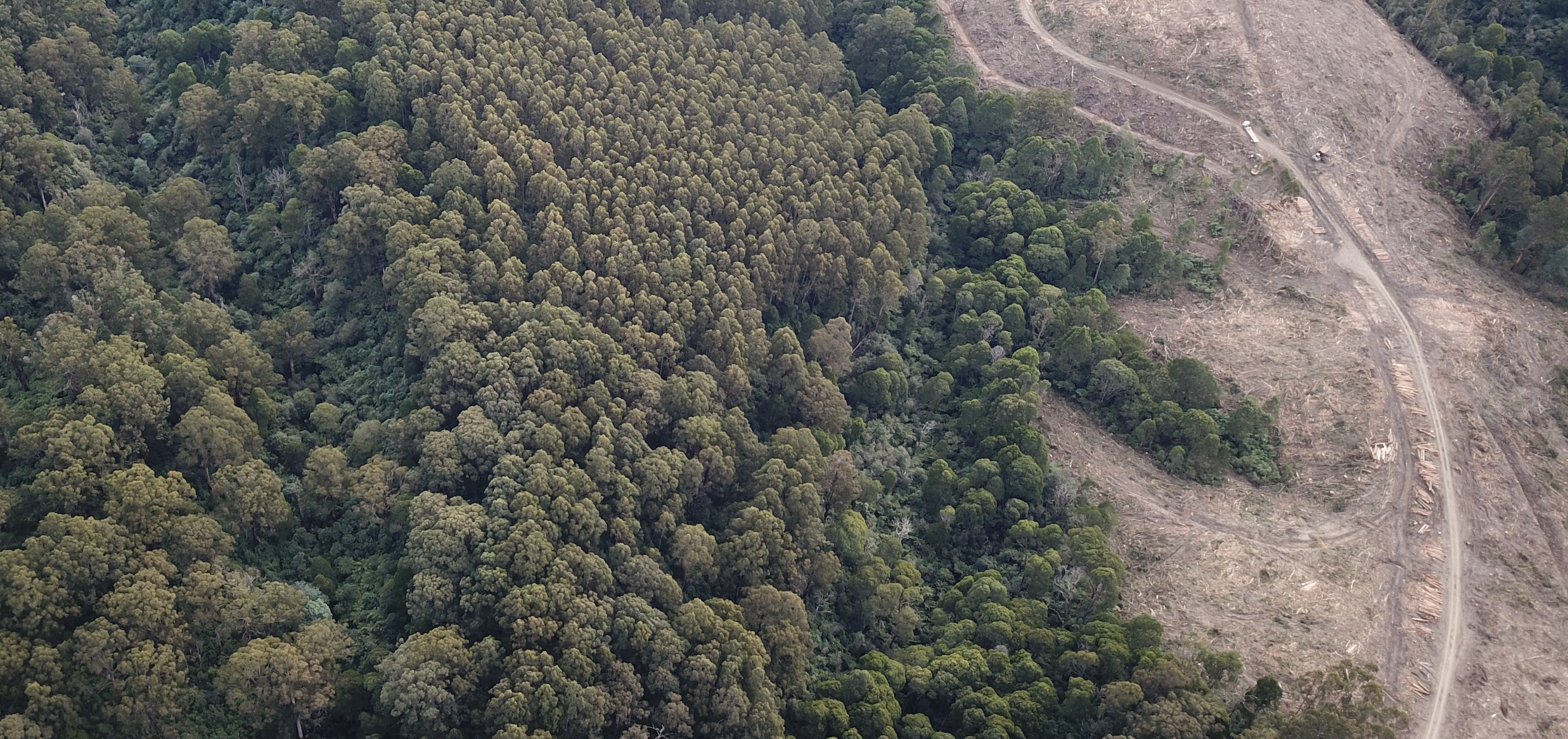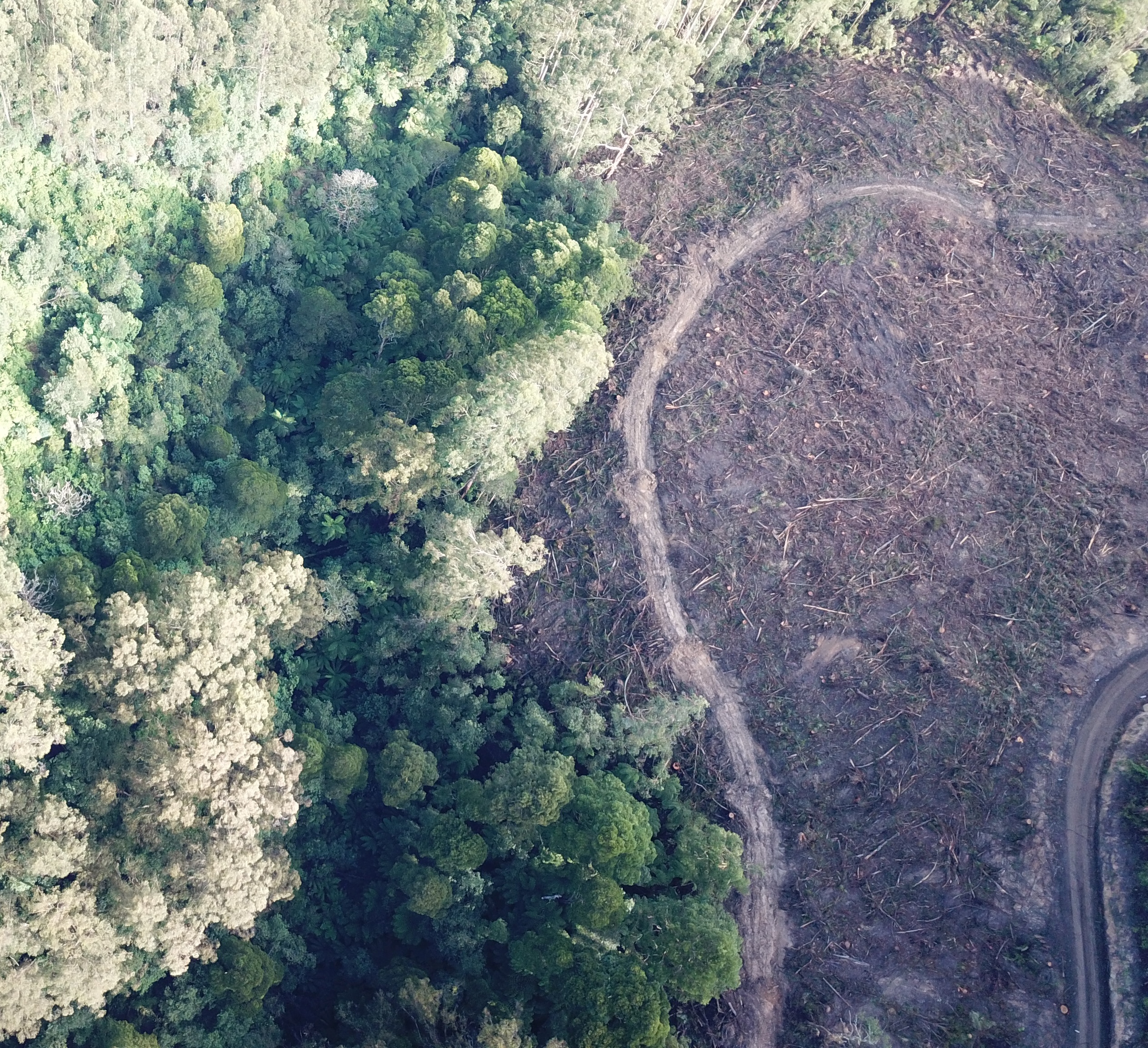 This is a photo of Fella's Coupe - the logging coupe that really brought the GFG community together. The image shows the coupe before logging happened. It is a large piece of crown land site licensed to Hancock Victorian Plantations (HVP) for forestry - the white line on the image shows where the boundary roughly is.