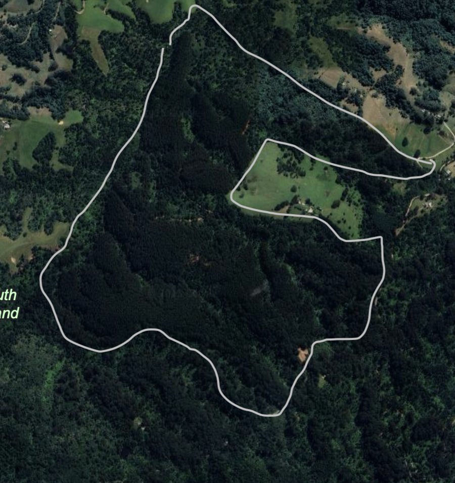 The photo was taken in late 2023. As you can see, it was heavily forested entirely with native species and lots of deep rainforest gullies . It is hard to imagine how steep the terrain is and how beautiful it was to be there but you can listen to a short radio interview that will take you into the forest.